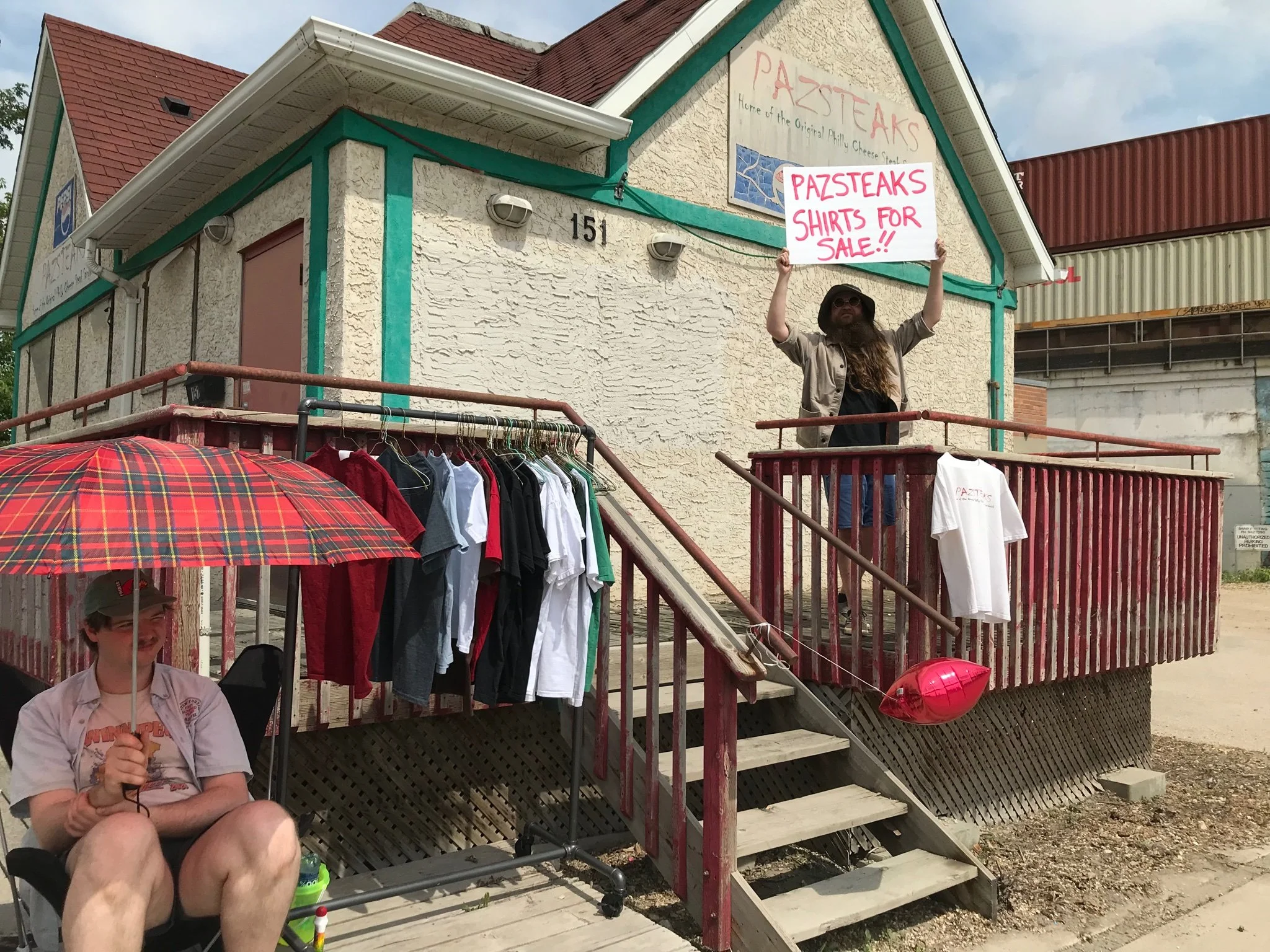 Fully customize your own Pazsteaks shirt! Pazsteaks is a historic building and landmark establishment located in downtown Winnipeg.